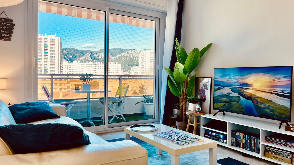 Nouveau disponible à partir de février 2026 au cœur du Mourillon dans une résidence standing, superbe 2 pièces (43m2) avec belle Terrasse (9m2), au 3ème étage avec ascenseur. Belle vue dégagée ville, verdure et montagnes (rare au Mourillon). Idéalement situé a 1 min à pied des commerces, et 2 minutes des plages, wifi ultra rapide, places de parking gratuites dans rues/plage (1300 places) Salon TV Qled 4k 127cm Netflix Chambre TV 98cm Cuisine (micro onde, cafetière, plaque induction, frigo ….)