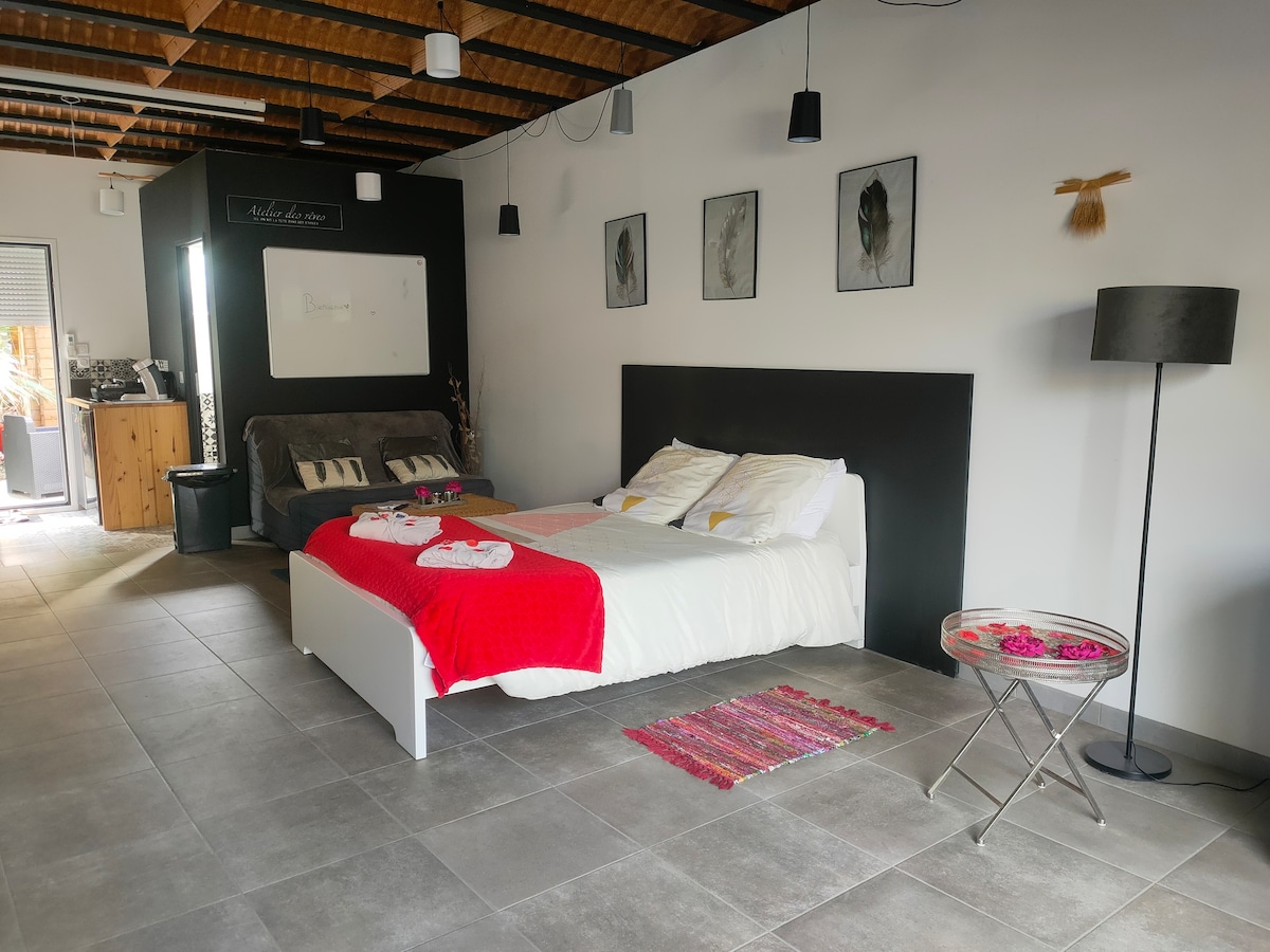 歡迎來到我們位於叢林中心的異國風情度假勝地! 我們的閣樓坐落在鬱鬱蔥蔥的葉子和熱帶洞穴中,為尋找過夜度假的愛好者提供迷人的度假勝地。 非常舒適,配備完全私人的水療中心和桑拿房,完全隱私。 配備空調的舒適性最佳。 位於圖盧茲Pont des Demoiselles區的中心,靠近Canal du Midi ,距離市中心5分鐘。