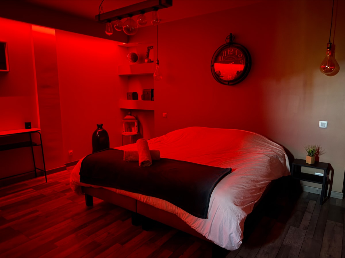 - Balnéothérapie 🛁 - Sauna 🧖♀️🧖♂️ - Siège massant 💆♂️💆♀️ - Lit Rond / Miroir 🛌 Notre Relax Room est spécialement confectionnée à partir d'un esprit créatif et cocooning, nous vous devoilons le fruit d'un travail passionnant à l'attention aux détails toute particulière. Réservez dès maintenant pour vous offrir une parenthèse hors du commun et remplie de souvenirs . Détendez-vous dans ce logement unique.