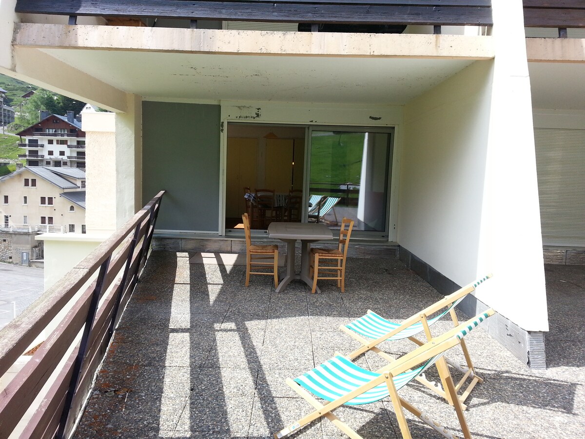 拉蒙吉 (La Mongie) 心臟的單間公寓,位於滑雪道旁