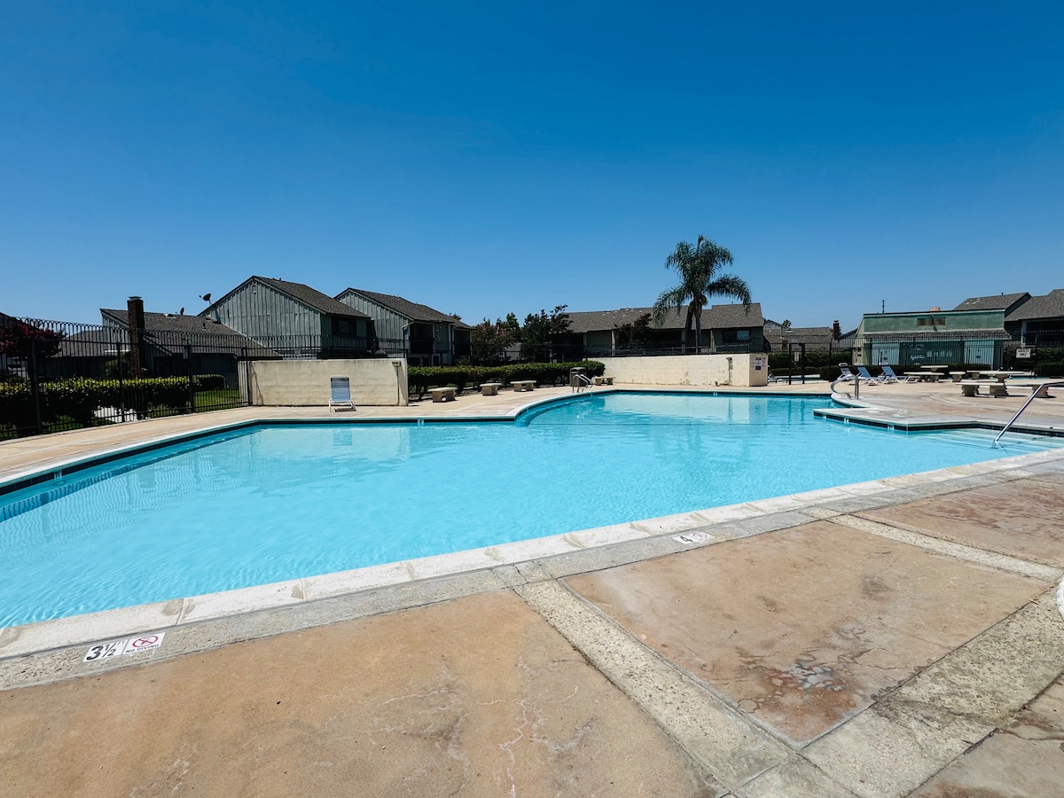 這間時尚的單間公寓位於適合家庭入住的街區,位於安大略機場和會議中心、許多醫院和商場的中心,距離山脈、海灘和洛杉磯約一小時車程。此單間公寓配備了您需要的一切!有一個小廚房,包括Keurig、熱板、微波爐和迷你冰箱。有一個小露臺區域,可享受戶外活動,或可觀看您最喜愛的電視節目。您一定會在這裡放鬆身心!
