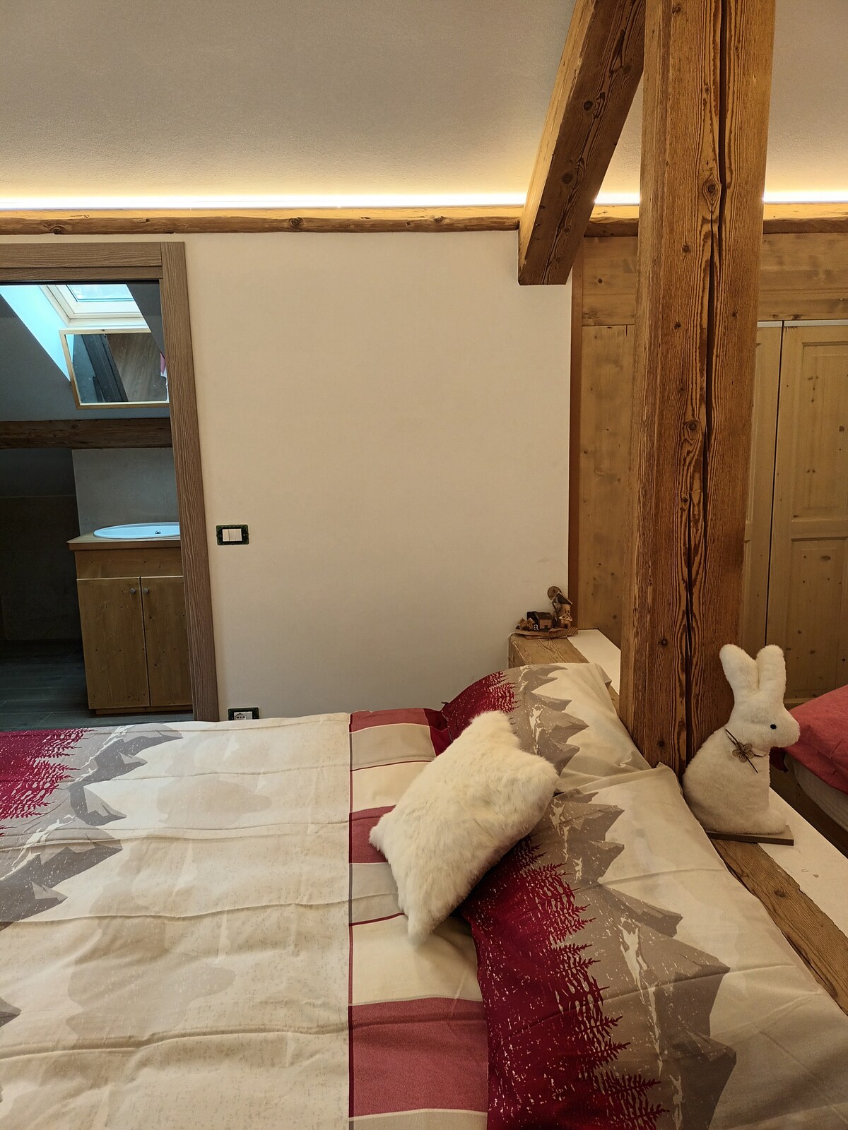 Benvenuti in Haus Gobbis, una dimora autentica incastonata tra le Dolomiti Bellunesi, dove il tempo rallenta e il legno racconta storie. Qui non si soggiorna, si vive un’esperienza trasformativa. L’appartamento ristrutturato con amore e materiali locali, mantenendo travi originali, arredi scolpiti a mano, tessuti caldi e dettagli alpini che evocano le tradizioni di un tempo. Ogni stanza è un rifugio: il letto del soppalco profuma di larice la luce soffusa crea un’atmosfera intima e raccolta.