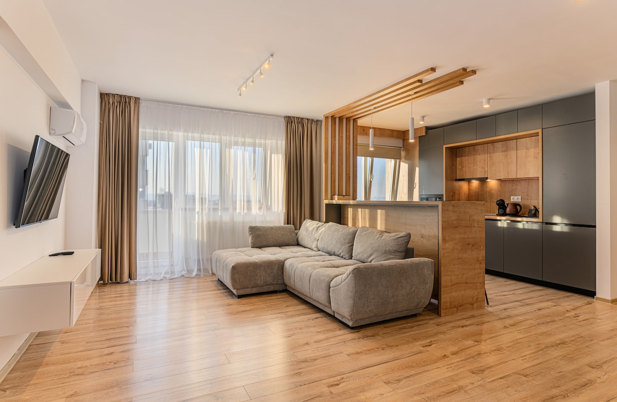 這是一間寬敞的公寓,設計獨特,位於一棟國際獲獎建築的一樓,地理位置安靜,保證您在美麗的布拉索夫市度過愉快的時光。 房客可以享受獨立入口、自助入住和獨家使用的英式庭院。 非常適合家庭和朋友團體。
