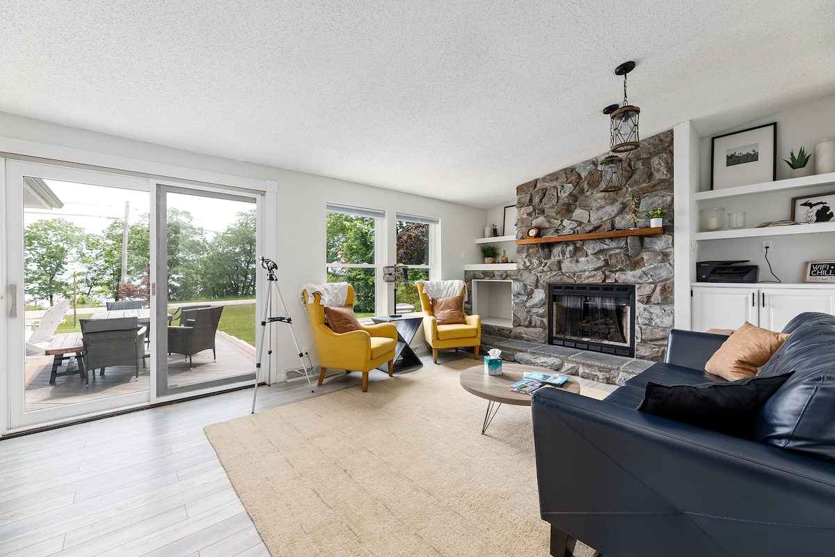 Downtown only 2 miles away! Sleeps 8. Stone Gas Fireplace! Pet Friendly 140 feet of Bay front across the road beach frontage 3 miles from The Commons 25 Miles to the Sleeping Bear Dunes 14 miles to Sutton's Bay Outside Patio/Gazebo 300 feet from the TART bike trail 2 bathrooms Fast WI-FI Our place is close to the City Center and public transport. You’ll love this place because of Location & our views of West Grand Traverse Bay are Amazing! A public beach 200 yards away 3 Awsome Restaurants