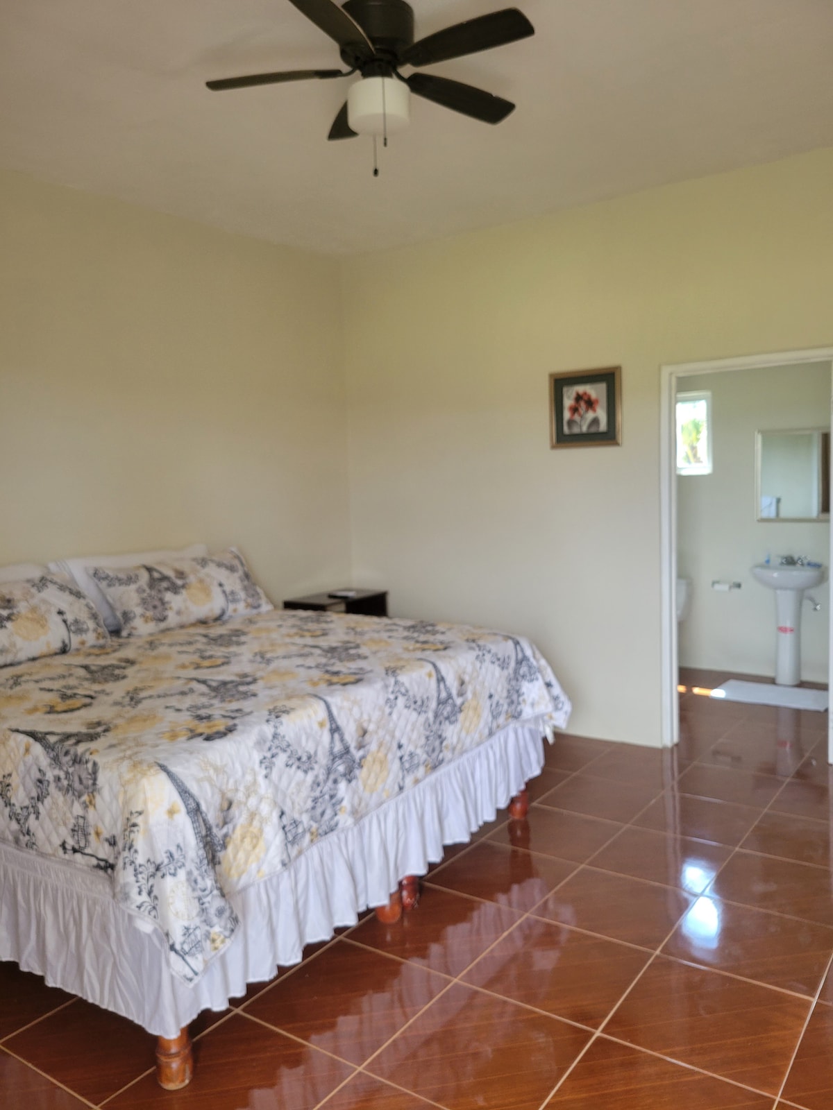 Peace and Tranquillity everyday An escape from reality into nature’s own wonderland With Serenity 30 minutes from Little Ochi Saint Elizabeth The Haven contains a ceiling fan, 1 bathroom, 1 luxury bed, 1 lamp on each bed side table. Beautiful Hill View. Ideal for nature lovers, romantic dates, or having a good time. No pets allowed. Be sure to check out our other listing on our profile if your dates are not available here or if you would like to book all units for a family.