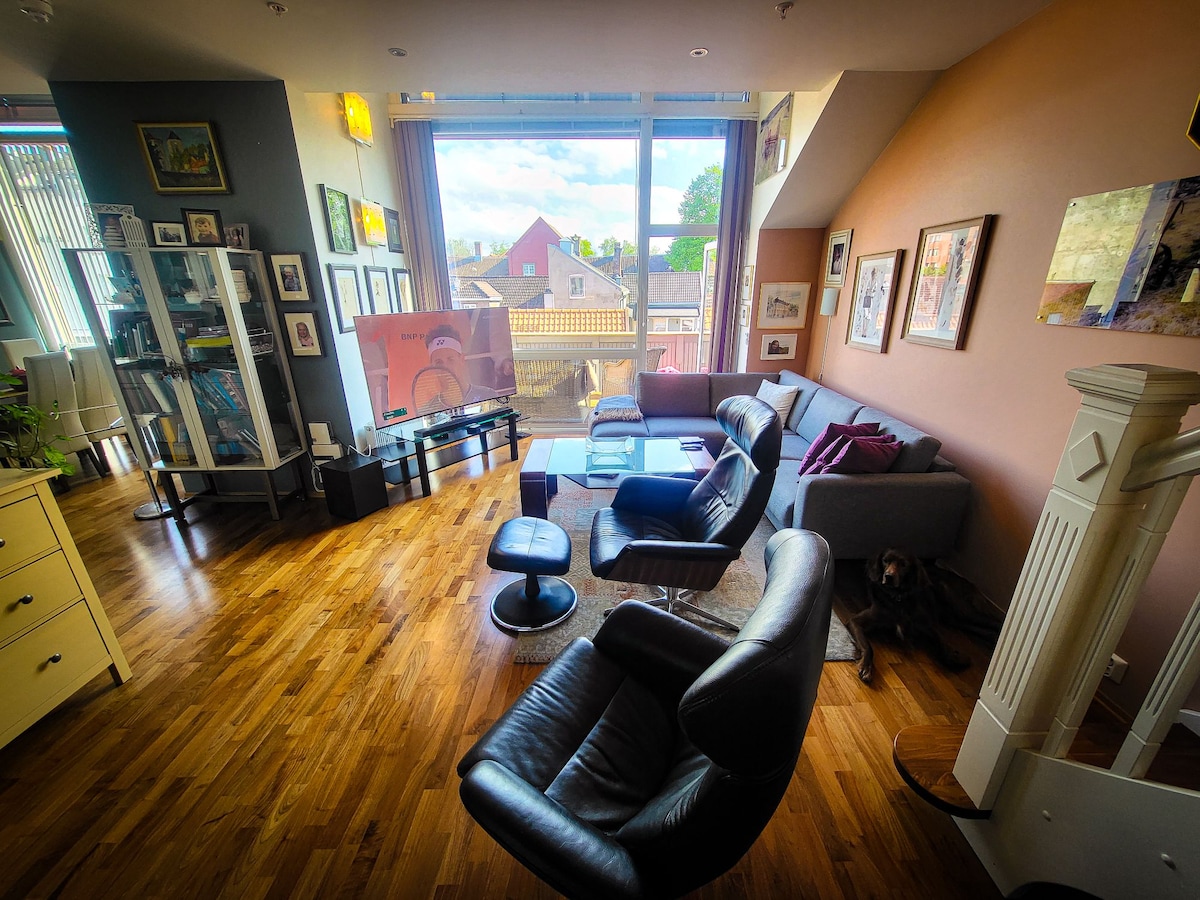 Nyt fantastisk panoramautsikt fra en nyoppusset og romslig leilighet over to etasjer, 2.etasje og loft. Beliggende landlig og fredelig på Ranheim, med to solrike terrasser. Kort vei til marka og kun 10 min til Trondheim sentrum. Leiligheten har tre soverom og en sovesofa, plass til opptil 8 personer. Perfekt for familier eller vennegrupper som ønsker komfort, ro og nærhet til både natur og by. Gratis parkering, elbil-lader, WiFi, fullt utstyrt kjøkken, to stuer, sengetøy og håndduker inkludert.
