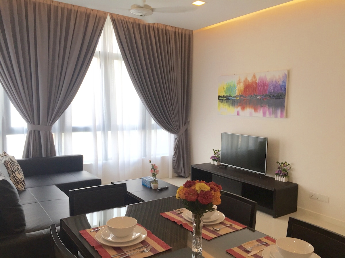 Oasis Ara Damansara中央商務區精明商務旅客的設計師套房。 設計精美的單位,配有1間臥室和1間書房。您會發現公寓配有優雅的客廳,配有實用的餐廳和廚房區域。 學習區域是我們單位的特別附加區域,專為商務旅客的需求設計。配合高速網路,您的網路連線可確保順暢的瀏覽體驗。