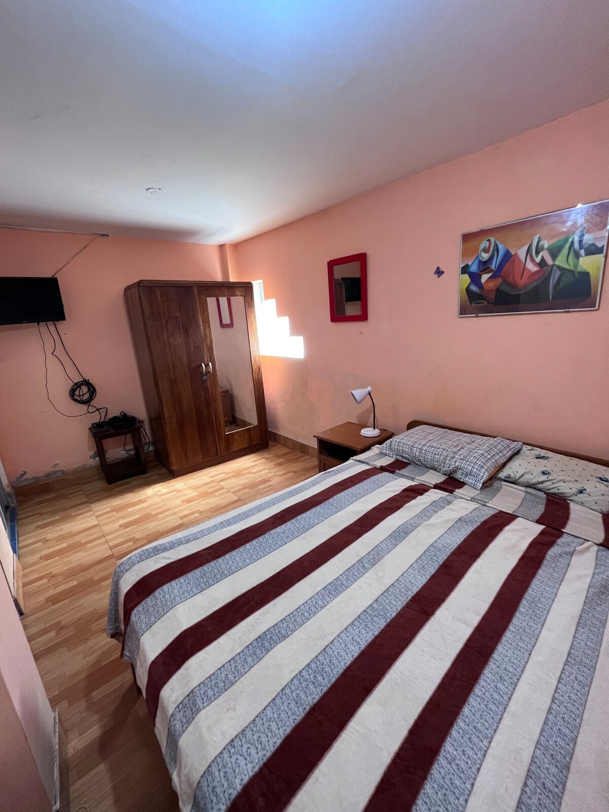 舒適的房間,配有全套浴室和獨立出口,面向聖埃斯特班公園。 位於一個家庭住宅內,有兩位成員隨時準備在客人需要時提供服務,位於一個安靜且位於市中心的住宅區,讓您可以快速前往特魯希略的不同場所。 房間入口處夜間照明良好