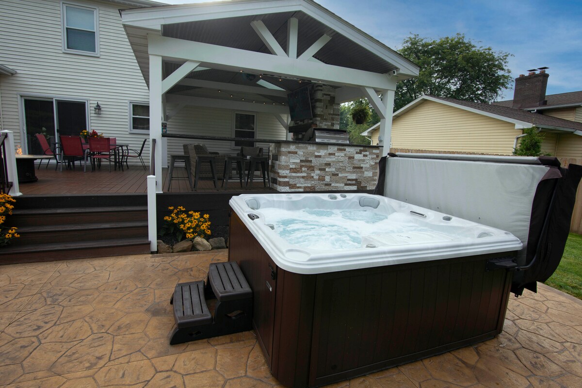 歡迎來到俄亥俄州豪蘭市中心的綠洲。 此房源距離Avalon Grand Resort和美第奇藝術博物館僅幾步之遙,讓您有家的感覺。享受該地區提供的所有服務,或入住並充分利用房源的設備與服務。 後院包括一個600平方英尺的大露臺,配有壁爐、火坑、內置烤架和有蓋起居室、壓印混凝土露臺和按摩浴缸,非常適合娛樂或放鬆。室內享有完整的地下室酒吧、100 吋投影螢幕和遊戲室