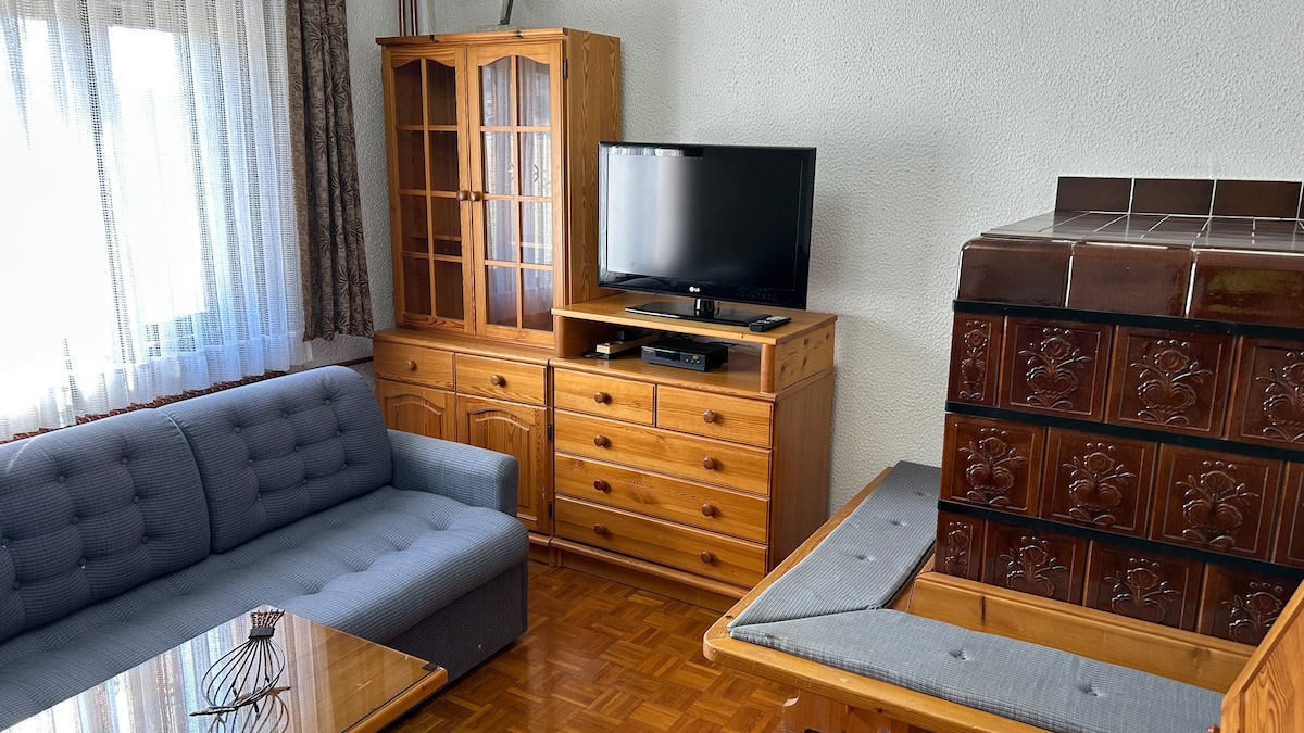 Located on the edge of the forest, the apartment offers an escape from the busy city life. Perfect for hikers and mountainbikers, there are trails in the forest and lots of mountaintops to conquer. In the evening, relax on the terrace or watching TV. Please note that there is a mandatory tourist tax payable upon arrival of 2,00 €/day for adults, 1,00 € for kids ages 7-18 and 0,00 € for kids ages 0-6.