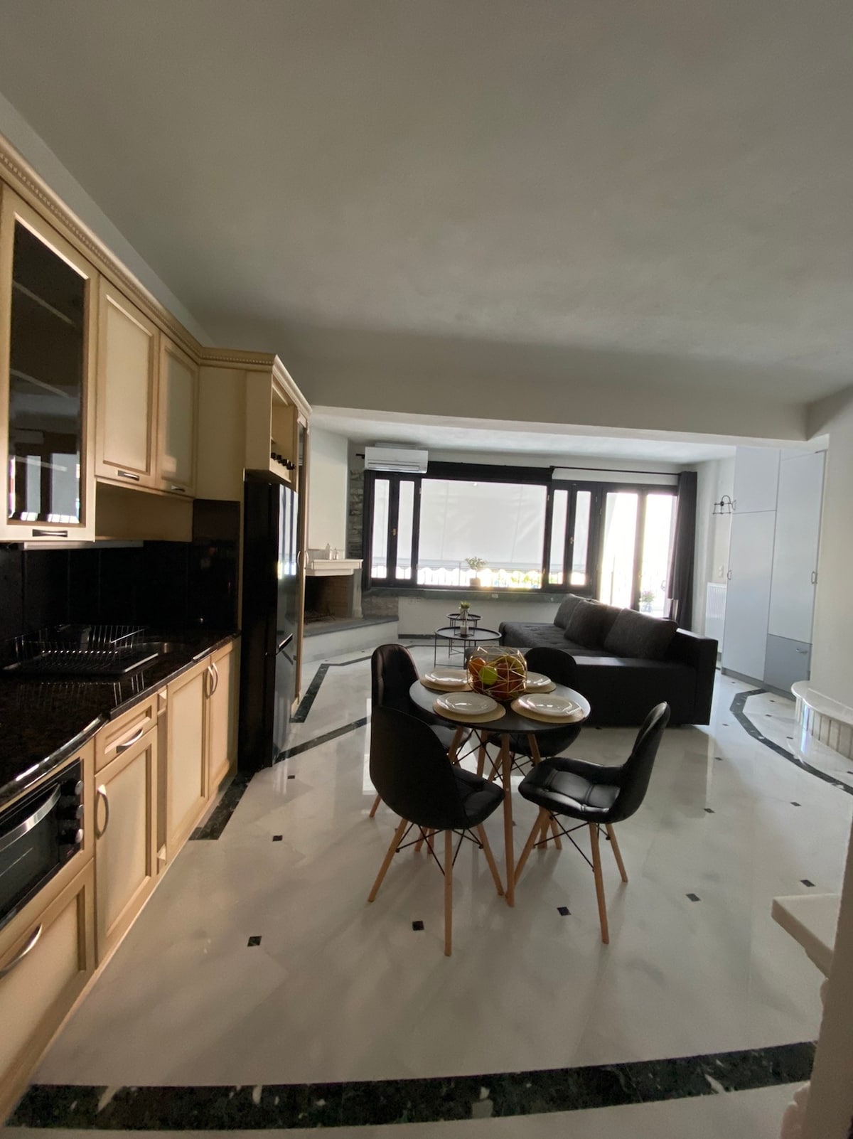 這間時尚且陽光充足的公寓面積為100平方公尺,位於卡蘭帕卡舊城區。它位於美麗的景觀中,四周環繞著樹木,露臺可欣賞著名的梅特奧拉岩石的壯麗景色!入住此處,您可以輕鬆前往卡蘭帕卡的購物區(餐廳、麵包店、咖啡店、銀行、郵局等),因為它距離市中心僅5分鐘路程。它位於一個安靜的社區,方便前往卡蘭帕卡的最佳景點,甚至步行探索梅特奧拉! 關鍵位置、專業清潔和優雅的裝飾使其適合每位房客。