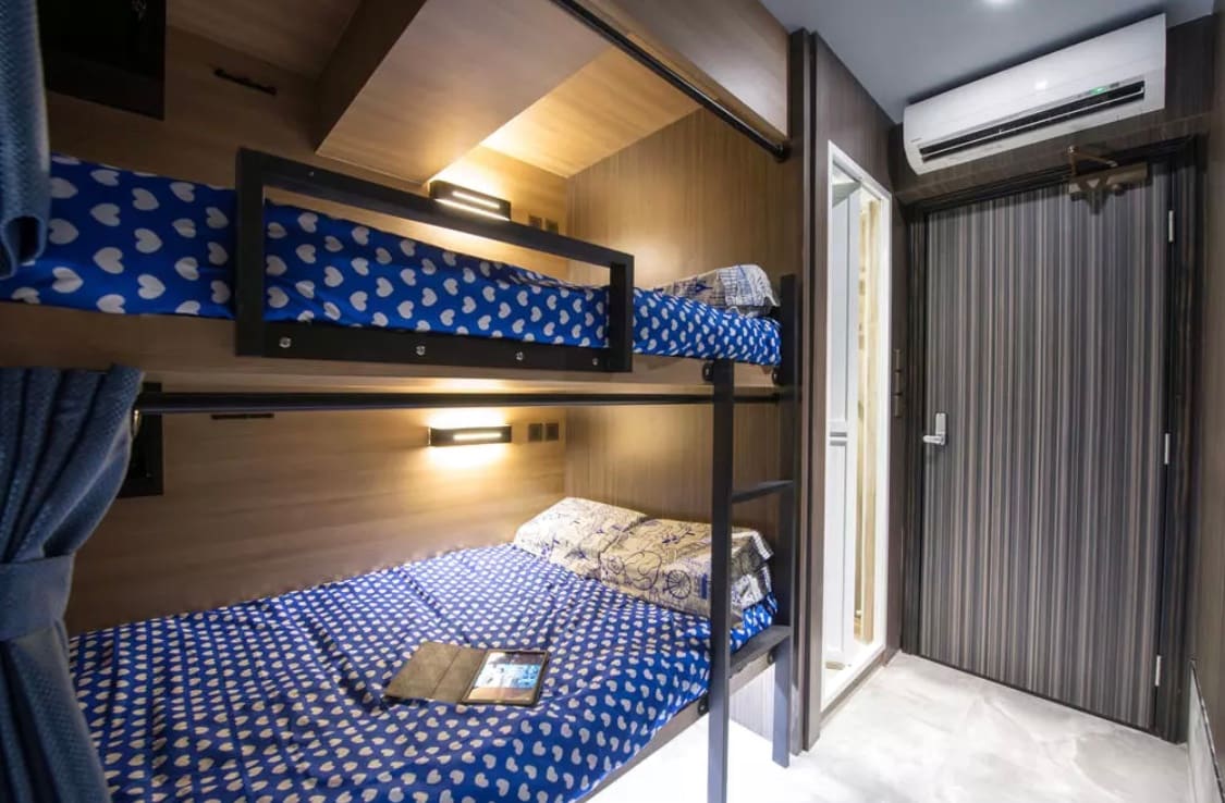 我們位置在佐敦,距離地鉄站步行2分鈡可以到。距離高鐵站也是10分鐘路程,交通很方便。 這個房間有2張1.2米宽上下床,每张床可睡2人, 共有4张床铺,最多可以住8人。這個是私人房間,房內有獨立衛浴,訂了就只有你們自己享用,不會有其他人 。 特別注意, 客廳廚房是共用的. check in time 3:00pm前房客若有需要可以提前過來放下行李,或check out 那天可以暫存行李。