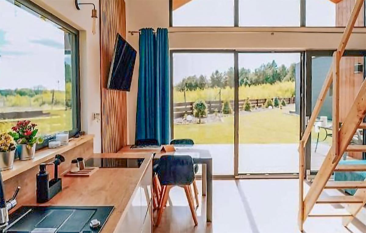 需要在日常生活中放鬆身心和休息嗎? 我們的房子將幫助您恢復平衡……溫馨的室內裝潢、天然材料……在充滿熱水的俄羅斯泳池中休息,在桑拿房中舒緩身體和靈魂……這一切都在Tuchola Forests ,靠近2個湖泊,在草地、田野和森林中間。歡迎光臨!