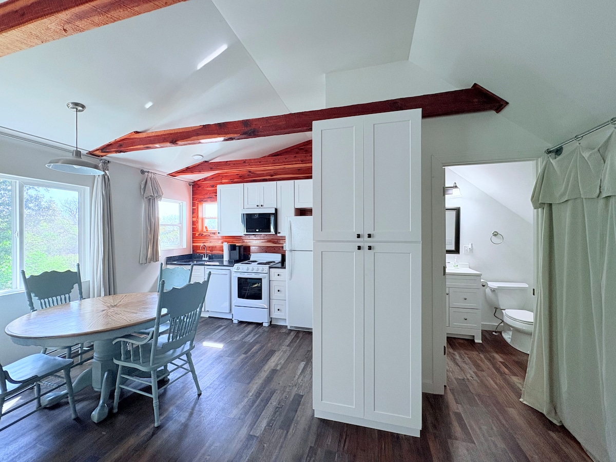 在這個寧靜的鄉村度假勝地放鬆身心! 我們的公寓面積為900平方英尺,配備齊全,結合舒適的舒適感和迷人的農舍風格。享受: 🛏️ 2 間臥室(樓上 - 可睡 4 人) 🚿 1 間全套衛浴,配有立式淋浴間(樓上) 🧴 免費盥洗用品 🐾 寵物友善,提供大型狗籠和尿墊 非常適合情侶、小家庭或遠距工作人士入住。 放鬆身心,就像自己家吧!