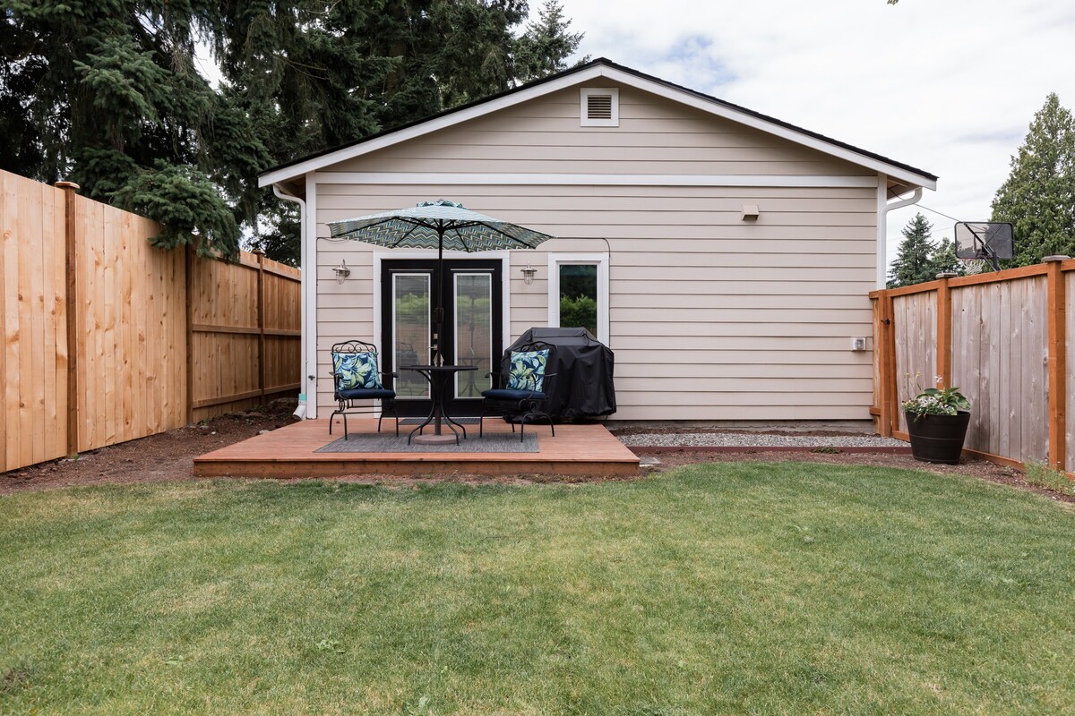 這間房源的開放空間和白色裝潢,搭配 3 公尺高的天花板、硬木地板、時尚攝影和可愛的盆栽植物,讓人耳目一新。前往私人庭院烹飪,享受日光浴和新鮮空氣,然後在超大的區域放鬆身心,享受4K智慧電視(配有Netflix )。 在一天結束時,在寧靜和舒適中休息和放鬆。飯店品質的寢具、毛巾和所有表面在您抵達之前都已按照最高標準精心清潔。 ★客房★ 此房源建於2017年,您會覺得自己身處現代豪華公寓,擁有10英尺高的天花板、開放式樓層和設備齊全的現代廚房。 您將享有完全的隱私和安全,因為房子完全獨立,位於我們房源的對面,甚至有自己的私人庭院! ★兩間臥室★ 兩間臥室均配有酒店品質的床墊、寢具和床單,在您抵達前剛剛清潔,非常適合休息和充電。您將有足夠的空間打開行李,並有梳妝台和充足的衣櫃空間,讓您有如家一般舒適!兩間客房均配有雙人床! 對於需要更多睡眠安排的團體,您可以在客廳享用一個驚人的組合沙發,並可使用一張雙人床尺寸的充氣床墊和額外的床單。 ★廚房★ 如果您想在旅途中享用家庭烹飪餐食,您一定會喜歡入住這裡。開放式廚房配有石英檯面、全新電器(包括燃氣爐),並配有所有常用烹飪設備。需要您沒有看到的東西?只需詢問,如果我們有的話,我們會帶過來! ★客廳★ 在開放式客廳放鬆身心,讓自己有家的感覺。在超級舒適的超大組合沙發上放鬆身心,在60吋4K電視上您最喜愛的電影或節目,配有有線電視、串流Netflix、Amazon Prime ,當然還有高速WiFi。 當您有足夠的螢幕時間時,您可以深入瞭解棋盤遊戲的儲藏處! ★私人庭院★ 只需走出房源後面,您就可以在自己的私人露臺上俯瞰自己的私人庭院!配備烹飪所需的一切設備! ★浴室和洗衣房★ 現代化的浴室配有全套洗漱用品,包括洗髮精、護髮乳、沐浴乳和吹風機! 配備洗衣機和烘衣機,提供免費洗衣精,方便您使用。 整套房源供您獨自使用!此外,還有一個有圍欄的私人庭院供您享用! 房子與另一個單位共用車道,但有專用的停車位和無限的街道停車位,因為它是一個完全的住宅區! 我們很樂意為您提供任何需要的幫助,如果您對房源有任何疑問,我們可以隨時提供協助! 不過,我們也很樂意在您住宿期間為您提供完全的隱私! 房源位於安靜友好的住宅區,距離Safeway雜貨店不到1.6公里。在山下的廣闊零售區度過一天,或搭乘Seatac輕軌輕鬆前往西雅圖市中心。對於需要前往機場和Seatac會議中心的人來說,房源距離不到1.6公里(1英里)! 如果您有車,您一定會喜歡從這個客用住房出行的便利!您可以搭乘I-5或I-99 , 15-20分鐘內即可抵達西雅圖或塔科馬。如果您不想處理西雅圖的交通或停車問題,您可以停在Tukwila輕軌站,並在約30分鐘內滑入西雅圖! 如果您沒有車,您還有很多選擇可以到處走走!Seatac輕軌站距離這裡只有半英里,步行即可輕鬆抵達。步行約3個街區即可抵達巴士站( 156路) ,每15分鐘一班。往返機場非常方便(步行或5分鐘的計程車/共乘)。只需幾分鐘即可隨時共乘,是出行的絕佳方式! 除了西雅圖之外,山下還有一個繁華的購物和餐飲區,叫做Southcenter。這裡有很多餐廳、電影院、購物中心、IKEA和該地區最大的商場之一。Southcenter距離房源5-10分鐘車程! 房子位於我們房源的後面,您可以繞過西側的主屋(主屋右側)進入。專用停車位標有歡迎標誌,位於車道的右側。有一扇寬敞的擺動門,直接通往您的Airbnb前台階!