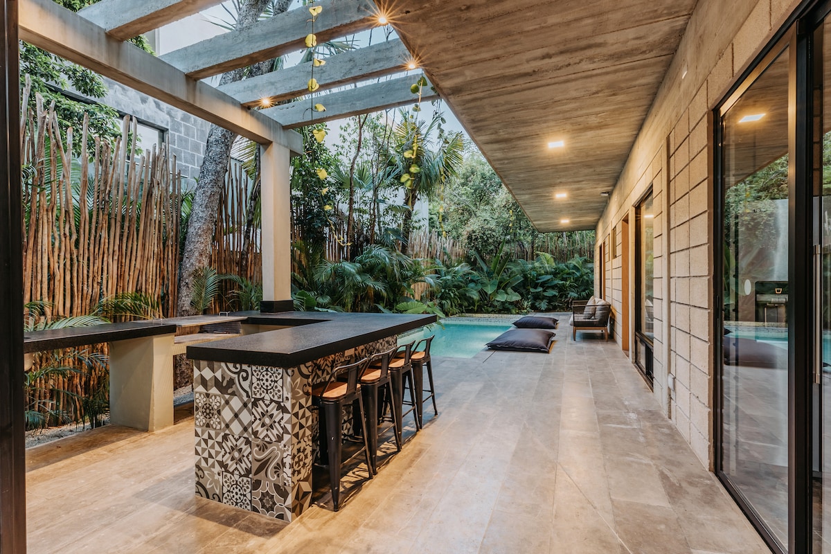 • GREAT LOCATION! 10 min to Tulum sandy beaches • 24/7 SECURITY - Gated Community • VIP Concierge Service (complimentary) • Mid-stay cleaning for all stays (complimentary) • 4 Bedrooms with bathrooms (2 Kings & 2 Queens), each with their own en-suite bathrooms • Sleeps up to 9 guests • PRIVATE POOL • ROOF TOP • A/C & Ceiling fans in every room • Fiber Fast Internet connection • Fully equipped kitchen • Featured on Dezeen, AD, Vogue & Elle Decor.