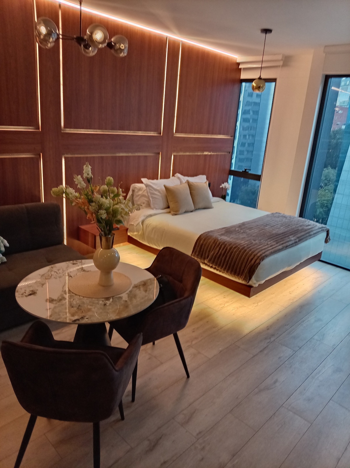 EDGE TOWER 大樓 15 樓 在基多最獨特的建築之一享受奢華體驗。這間優雅的公寓位於高樓層,可欣賞壯麗的城市景觀、無與倫比的地理位置和高標準的服務。 對於長期住宿,我們提供免費的專業清潔服務,確保您的舒適和福祉。