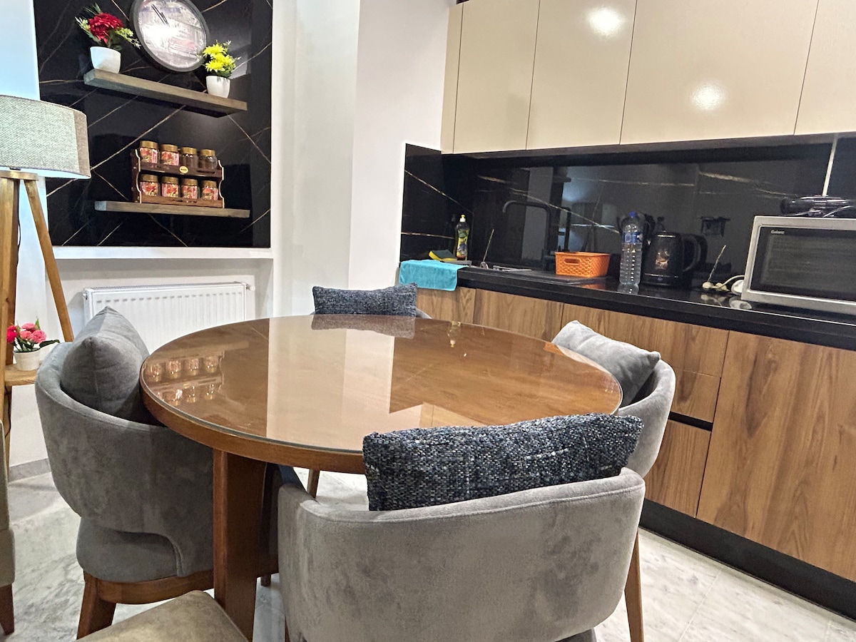 歡迎來到紫色調的寧靜天堂,紫色調是一種舒緩的顏色,賦予空間獨特而優雅的身份。 這間明亮寬敞的公寓設計完美,讓您舒適入住,放鬆身心,工作或與家人或朋友分享時光。 它擁有卓越的亮度、精緻的氛圍和極佳的位置;距離機場、Marsa、Carthage、Sidi Bousaid和市中心15分鐘。