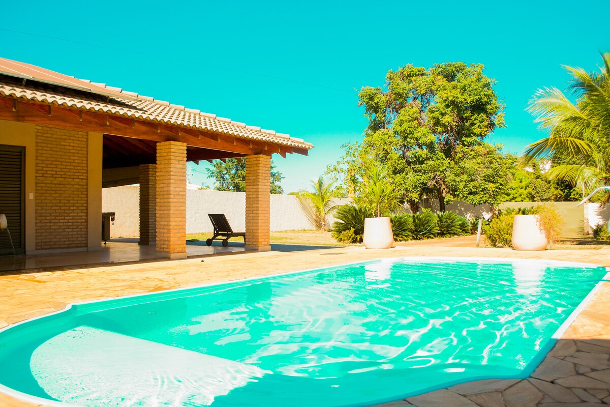 Acomodação pra 15 pessoas em cama • 3 Suítes com ar condicionado • 5 banheiros com chuveiros • Sala de TV • Cozinha toda equipada com panelas, pratos, copos e talheres • Área Gourmet , piscina, churrasqueira, cervejeira • Garagem para até 5 carros • Internet • Não fornecemos roupas de cama e banho LOCALIZAÇÃO PRIVILEGIADA, FICAMOS EM NO CONDOMÍNIO PRIMAVERA, LOCAL EXCELENTE PARA CURTIR E APROVEITAR MUITO A REGIÃO. FICAMOS CERCA DE 10 MINUTOS DOS PARQUES.