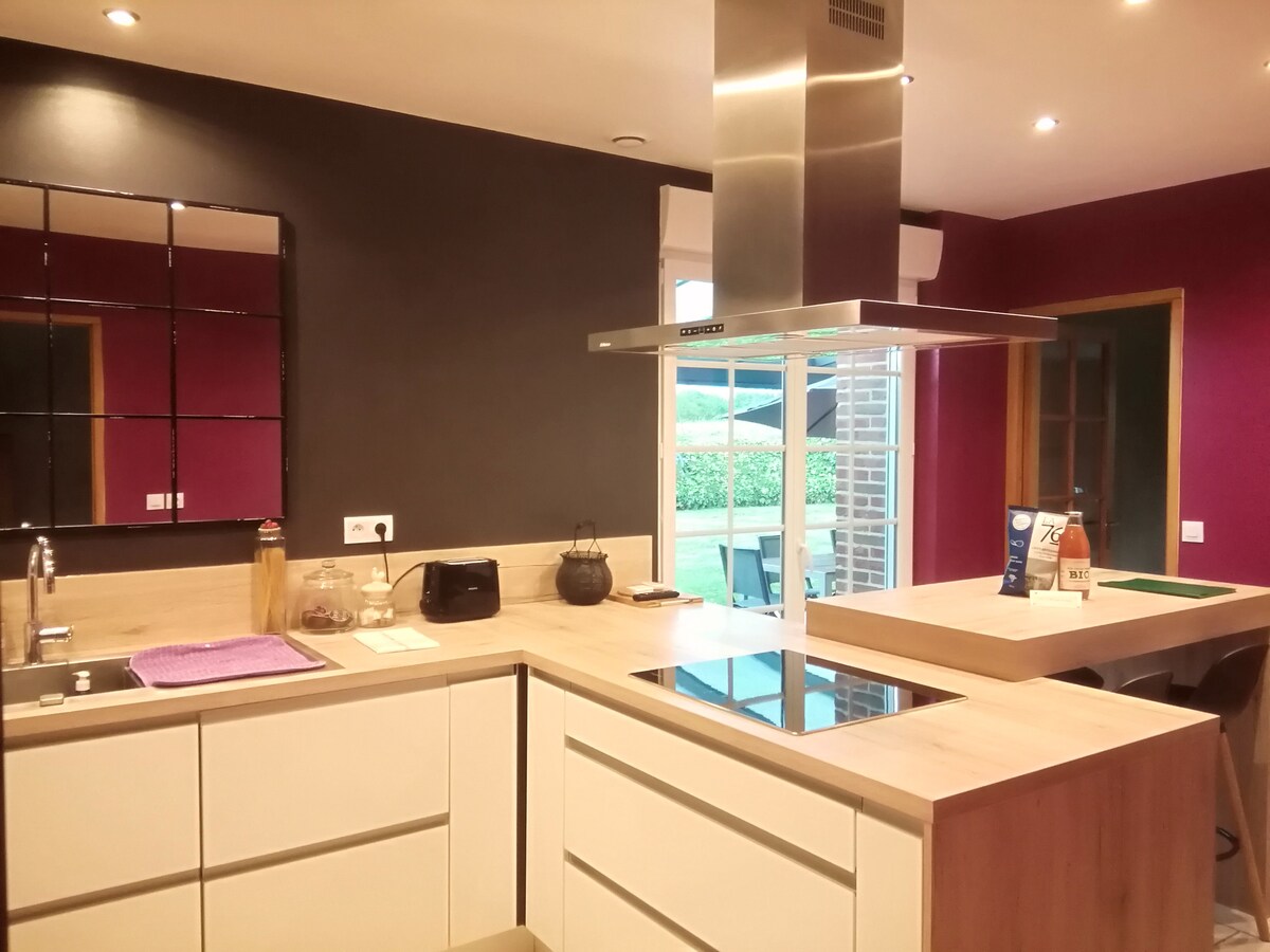 與親友一起享受這間寬敞、裝潢精美的住宿。 這間明亮的小屋距離Pont-L'Evêque 3分鐘路程,距離Deauville、Trouville和Honfleur 15分鐘路程,可直接和私人使用配備按摩浴缸和影片投影機的有蓋放鬆區域。 小屋位於安靜的區域,提供設備齊全的戶外露臺(客廳、桌子和燒烤),可欣賞壯麗的全景和無阻礙的景觀。 私人停車位、Wi-Fi、朝南、包括床單。