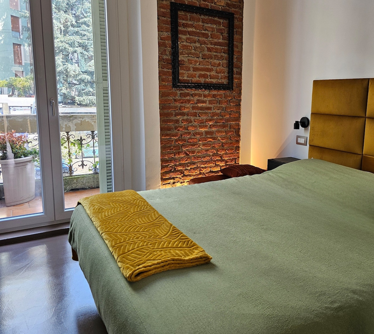Brand new 44-sqm apartment surrounded by the greenery of a communal garden, just a few steps from the pedestrian area of the Naviglio Grande. At the fifth floor with elevator and fantastic view (also of the Duomo). Beautiful, bright, new, spacious, quiet and equipped with every comfort: TV, air conditioning, wi-fi, self check-in, coffee machine and kettle, 100% cotton bed linen.