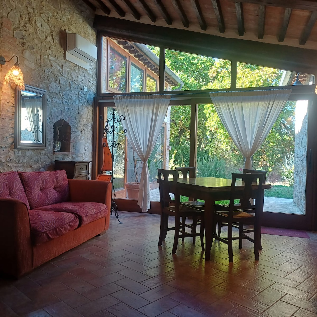 這套獨立公寓擁有55 MP的廚房、浴室、睡房和露臺。它以傳統託斯卡納風格搭配石頭和木頭。 距離大海20分鐘車程,距離錫耶納1小時車程,距離羅馬和佛羅倫薩2小時車程,距離卡爾達納市中心5分鐘車程,所有設備(雜貨、銀行、郵局、3間餐廳.. )您會發現許多活動,如騎馬、歷史和植物岸上觀光、品酒和千米奇妙的海灘,觀賞鳥和野生動物。