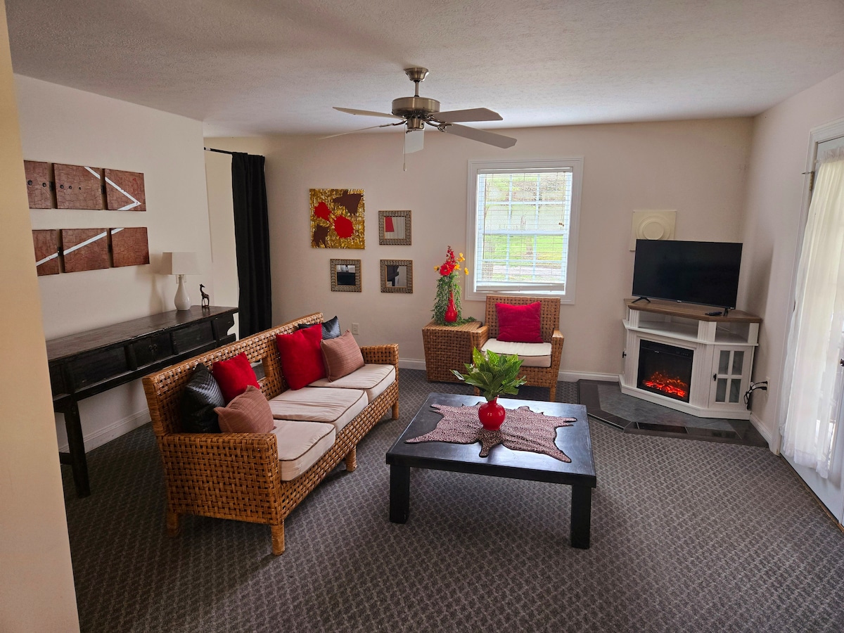 靠近阿米什鄉村的僻靜寬敞度假勝地。 獨立臥室和獨立全套浴室,配有大型起居區,配有可折疊床和沙發。電視、瓦斯壁爐、小冰箱和餐桌。充足的停車位。地下室區域,因此不方便殘障人士使用。適合家庭入住的實惠寬敞空間。 距離Sugarcreek 10分鐘,距離柏林20分鐘。附近有釀酒廠和酒莊。距離哈雷·戴維森探險和瓦瑟博物館5分鐘。
