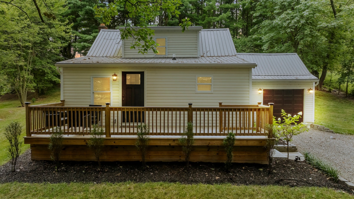 The Haven 就是一個休息的地方。入住這間位處中心地段卻安靜的房源,讓自己的旅程輕鬆無負擔。小屋坐落在樹林中,可欣賞池塘景觀和連綿起伏的山丘。位於美麗的阿米什鄉村中心,距離熱門景點僅幾分鐘路程。 起居區包括全套廚房、洗衣機和烘乾機,以及舒適的家具,可享受智慧電視和壁爐。 主樓層有一張特大床和全套浴室。閣樓有一張雙人床。 歡迎入住!