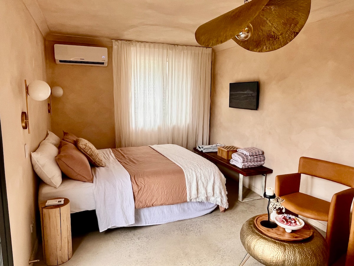 Relax in the haven of Beach Drift, in the heart of quaint Brunswick Heads Self contained flat with a high quality modern renovation throughout. 5 star hotel style mattress and custom made solid wood bed. The stylish coastal decor will inspire your relaxation in air conditioned bliss. Many quality features such as elegant natural wooden furniture, stone benchtops, netflix, filtered drinking water and mood lighting, Close to parks, river, beach, cafes, shops. 35 mins from airports.