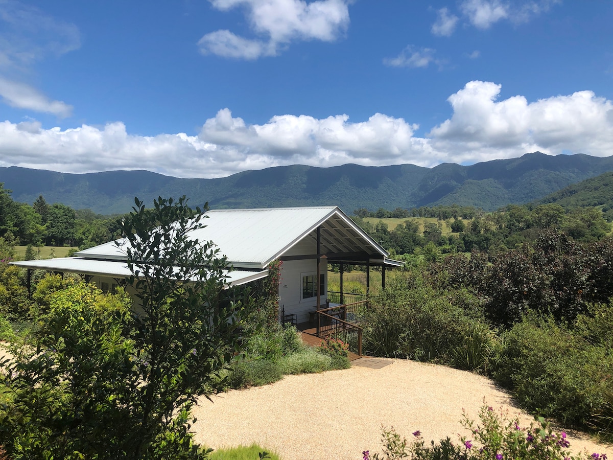 The ultimate couples retreat of peace & quiet away from the hustle and bustle! Built on one of the highest points within the centre of the Mount Warning (Wollumbin) Caldera the property is surrounded by 360 degrees of mountain views, lush greenery as far as the eye can see, & bright blue open skies! The stand-alone & self-contained modern one bedroom guesthouse is welcoming & bright with floor to ceiling windows & wrap around verandah, indoor and outdoor fire place & an outdoor bath tub!