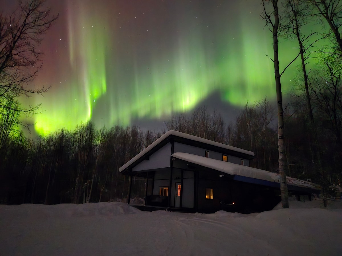 在這個田園詩般的度假勝地體驗阿拉斯加的精髓。在前往著名的Chena Hot Springs度假村的路上,您將享受便利的位置。在丙烷火坑旁的露台上放鬆身心,同時沉浸在迷人的奧羅拉景觀中。我丈夫Tony經常從我們的私人飛機跑道上駕駛他的叢林飛機或滑翔傘。