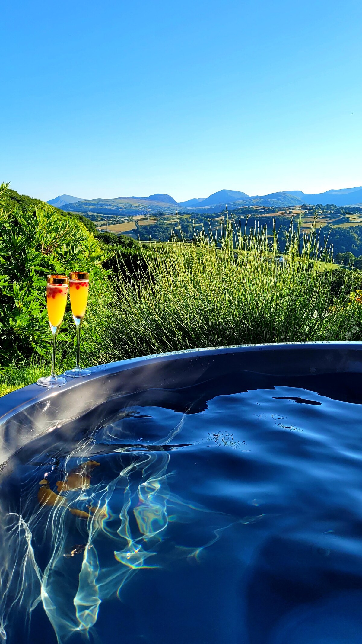 Tŷ農場度假山景單間公寓,配有按摩浴池