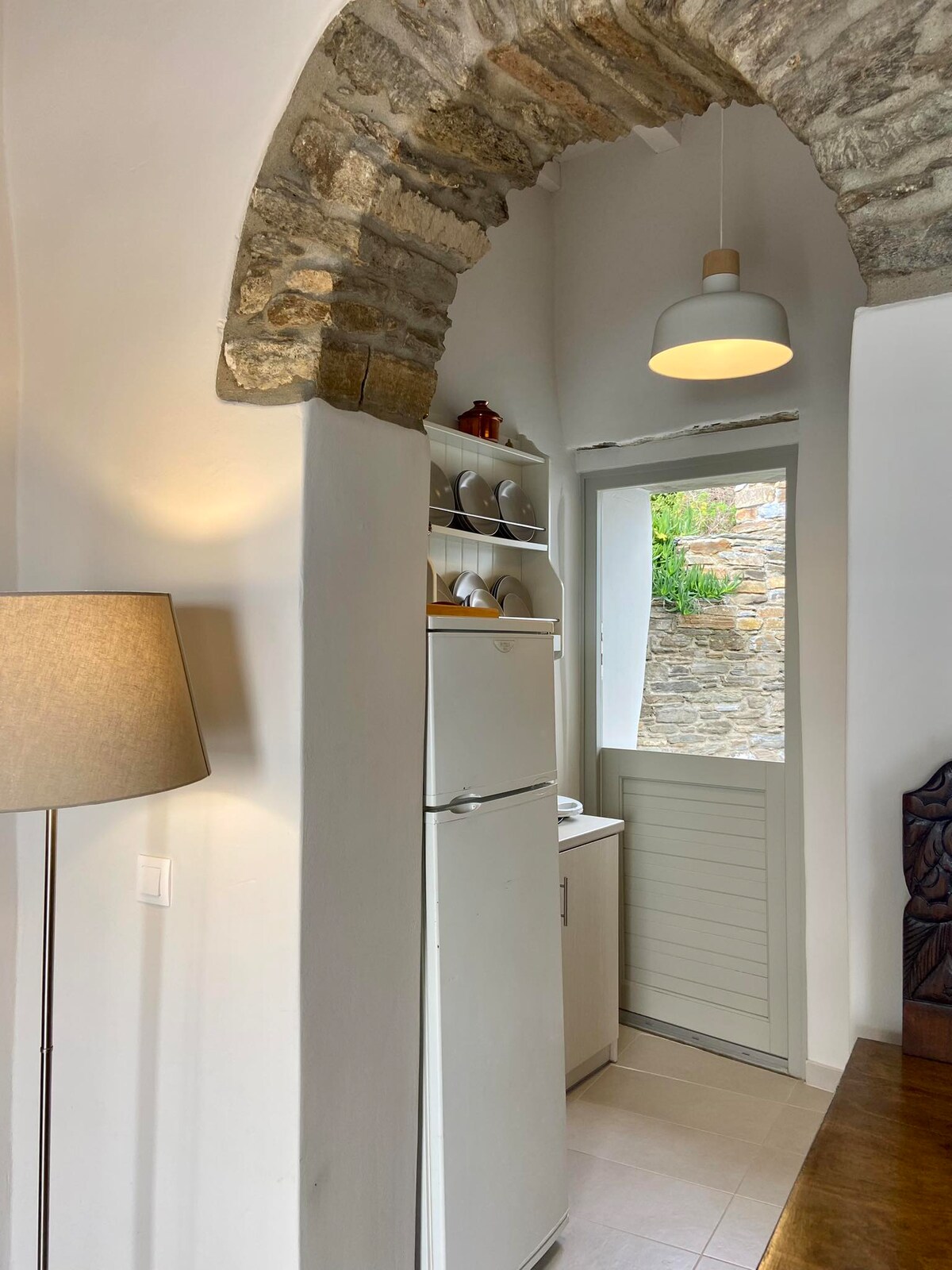 This 55 sq.m. eco-friendly house is located 18 mins by car from the port of Tinos, on the west side of the island, nestled in an olive grove and flanked by rocky landscape and a view of the Aegean Sea. This traditional farmhouse has been redesigned in a minimal style. The space is ideal for a couple who loves country living and privacy. It offers a chance to decompress from city life, and reconnect with the simplicity and tranquility of nature and mindfulness.