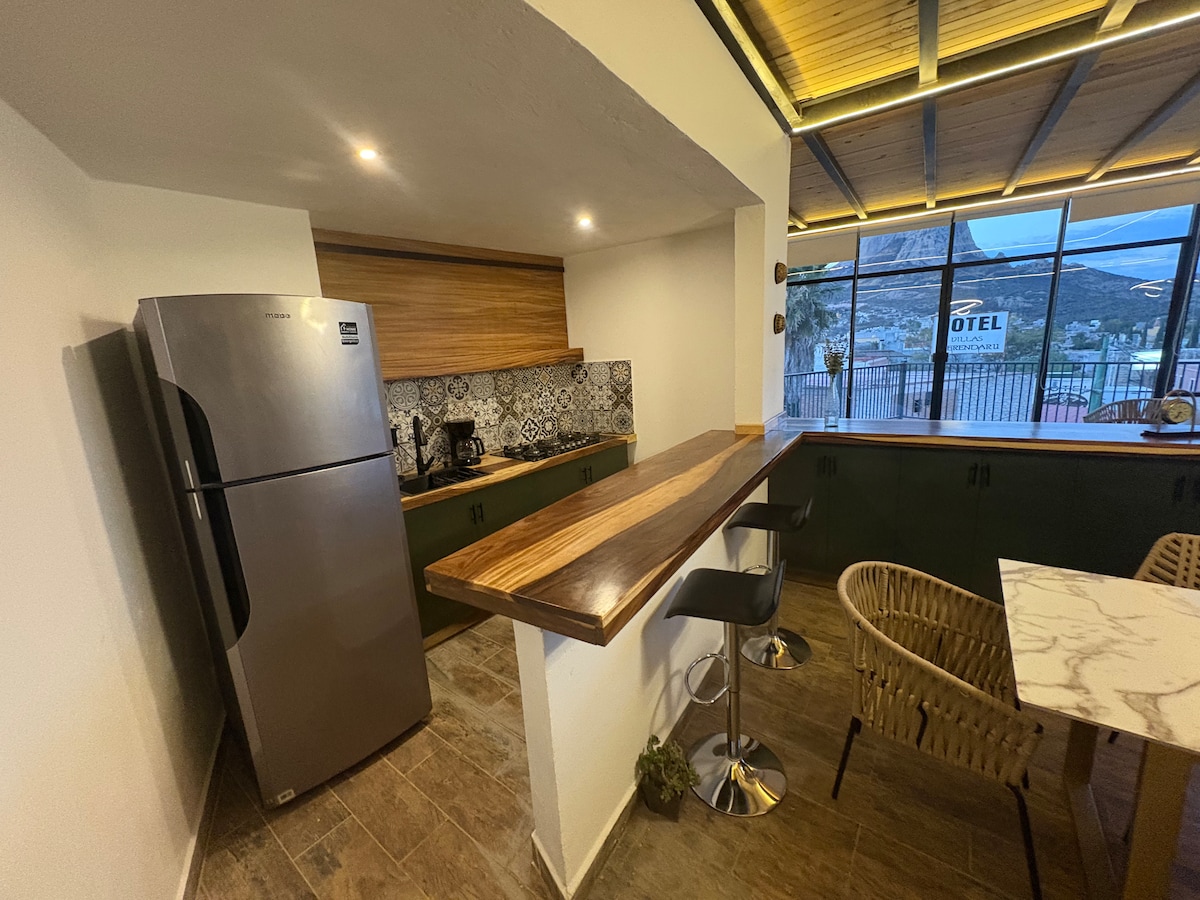 在神奇的伯納爾鎮,最好的住宿地點是我們美麗的兩房公寓。它具有極簡主義的設計,融合了該地區的特色材料和植物,營造出愉悅的環境,始終以佩尼亞德貝爾納爾 (Peña de Bernal) 為框架,因為它的方向是為了欣賞巨石的最佳景觀。我們位於市中心,非常適合步行。我們有全天候監視和最好的露臺。