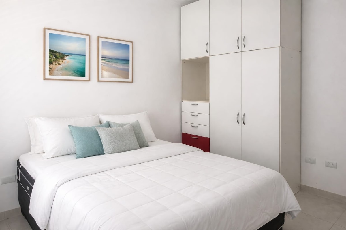 Apartamento novo 45m² com projeto assinado por arquiteta, móveis planejados de primeira qualidade. Apartamento muito lindo e confortável. Esta à 150m da praia do tenório, 200m da praia grande e 600m da orla do Itaguá. Possui tudo o que voce precisa para uma estadia perfeita. Contamos com smart TV, Wi-fi rápido, cozinha equipada com todos os utensílios, e uma vista para o mar. Condomínio completo com piscina, piscina aquecida e coberta e academia.Temos vaga coberta e portaria remota.