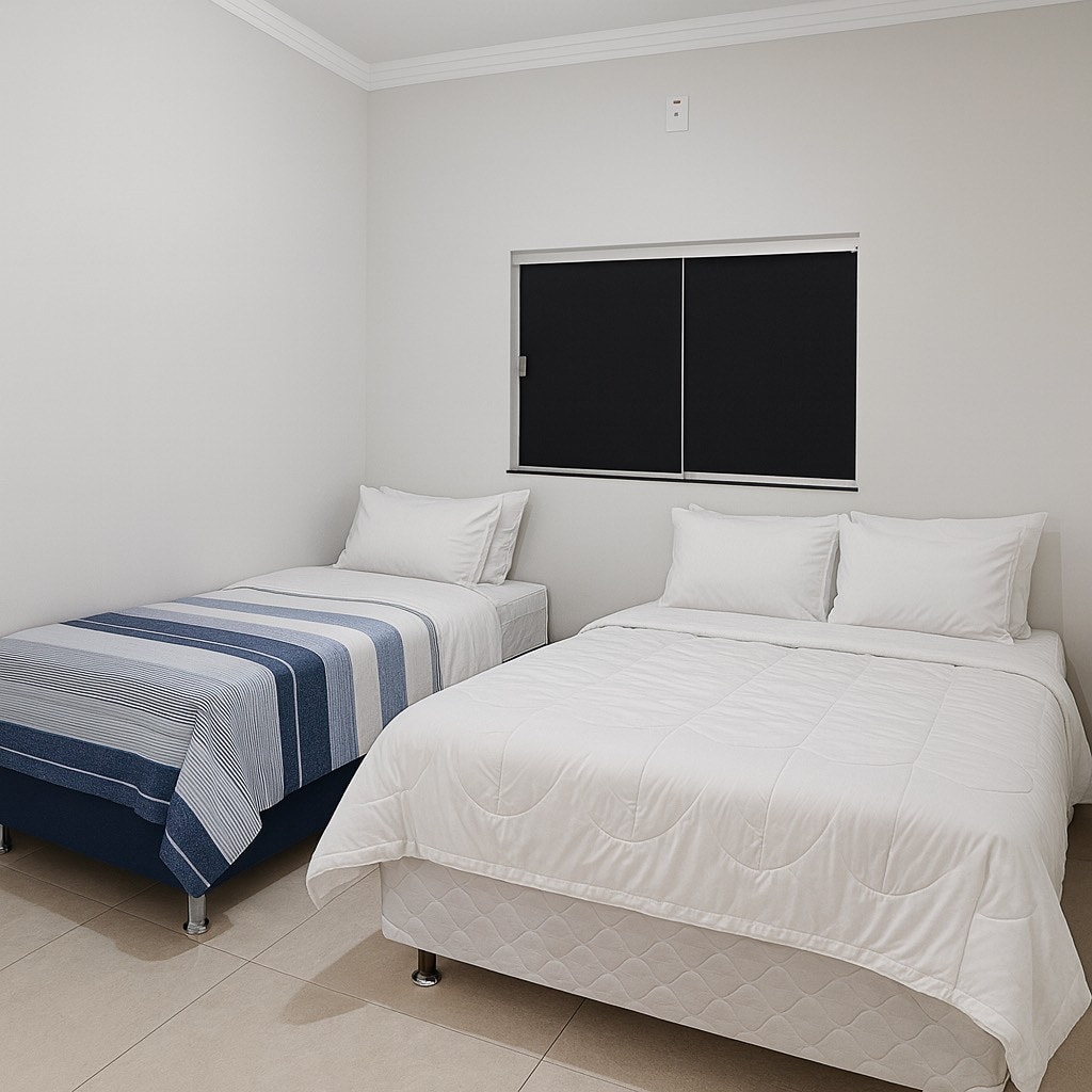 Apartamento Almaruq (906) é bem localizado: a 10 min do Aeroporto, 8 min do Shopping Uberaba e 10 min do Parque de Exposições (ABCZ), perto do centro, lojas e mercados. Apartamento completo! - Quarto 1: bicama e ventilador. - Quarto 2: cama queen e ventilador e Ar condicionado. Sala conjugada com sofá grande, TV e mesa. Ambiente arejado, condomínio com pista para caminhada e playground. a Área de Laser do condomínio ( piscina e salão de festa) é de uso excluívo para moradores do prédio.