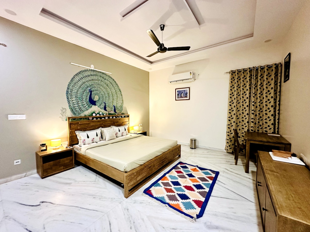Mor Jharokha Escape the hustle and bustle of the city and unwind at Mor Jharokha. Located just 4 km from the heart of Jodhpur and only 2 km from the airport, our peaceful retreat is surrounded by lush farms and frequented by friendly peacocks. Enjoy a tranquil stay where nature greets you at every corner. Perfect for relaxation and rejuvenation, we look forward to hosting you for an unforgettable experience!