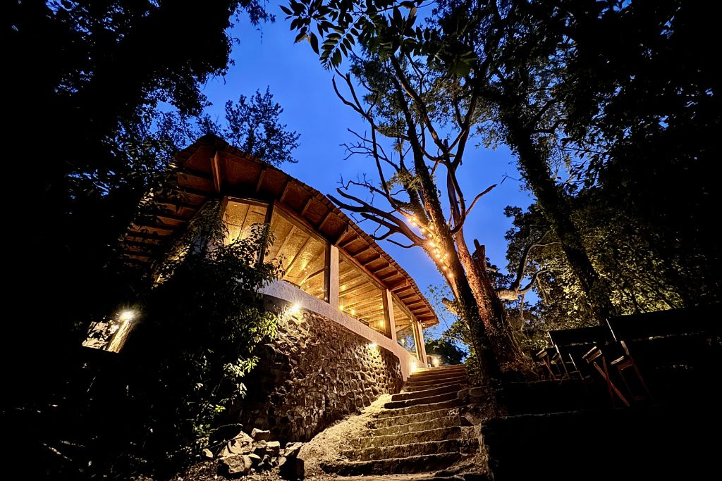 Perched on a peaceful hillside near Bhimtal within an estate, this hillside stay combines natural charm with modern comfort. With scenic views, it features a king-sized bed, wooden interiors, and a 32” TV; it’s designed for relaxation. Guests can savour sunset & sunrise vistas, unwind on the lawn with a BBQ & bonfire, or enjoy meals at the in-house dining. Close to Chota Kailash Dwar, trekking trails, Naukuchiatal (11.4 km) and the paragliding site (8.3 km), perfect for calm and adventure.