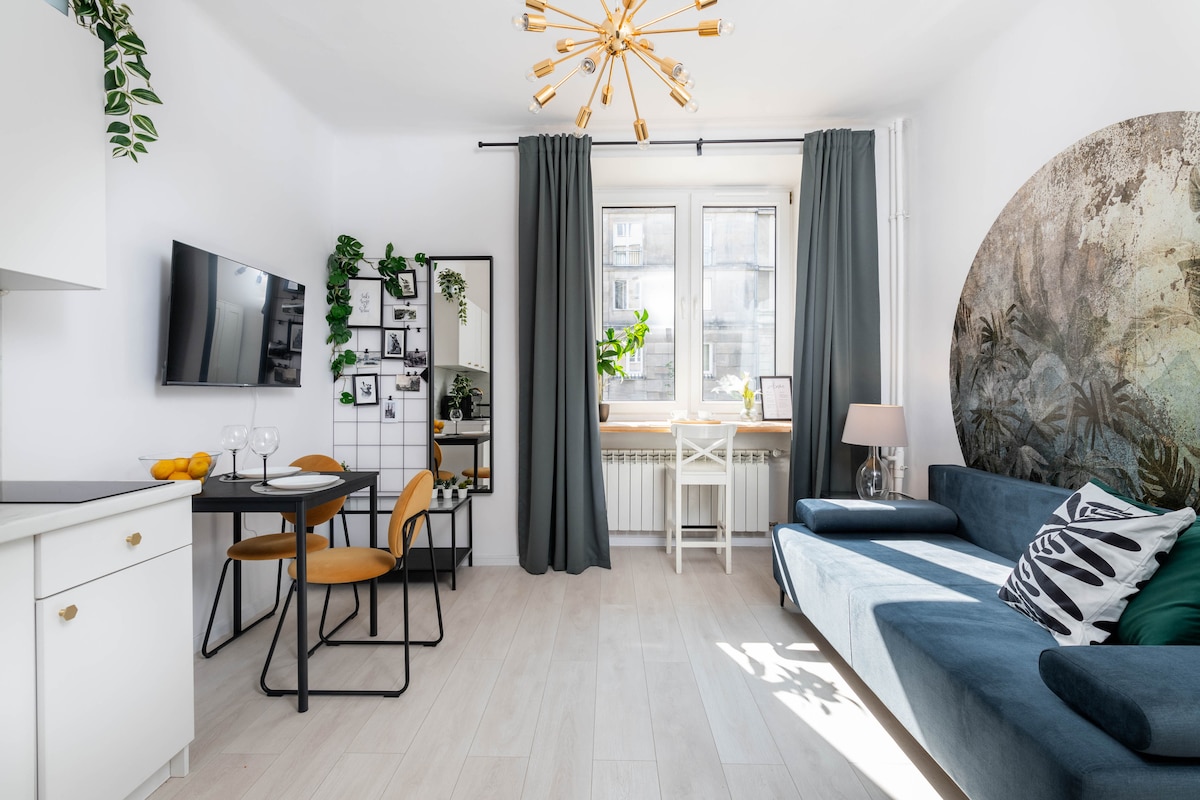 Beautiful, minimalistic, fully equipped, bright, high-ceiling and freshly renovated studio in the very heart of Warsaw. The flat is located next to the Zbawiciela square, one of the best known places in the city. It is situated in a historic town house from 1950s which is a part fo iconic MDM Warsaw district. It's a perfect place for a single/couple who loves living the city life. The surroundings are often called 'the Paris of Poland' due to the magnificent architecture and local lifestyle.