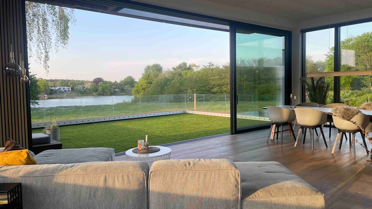 Arkitekttegnet hus i vandkanten