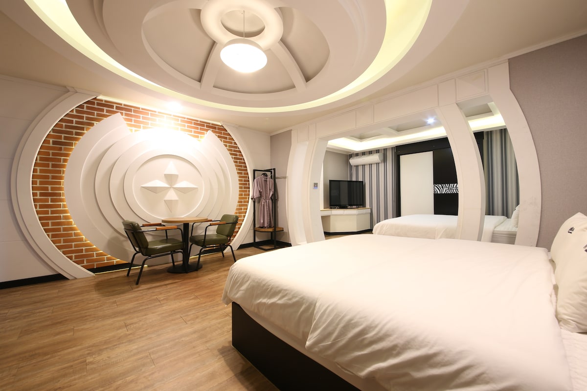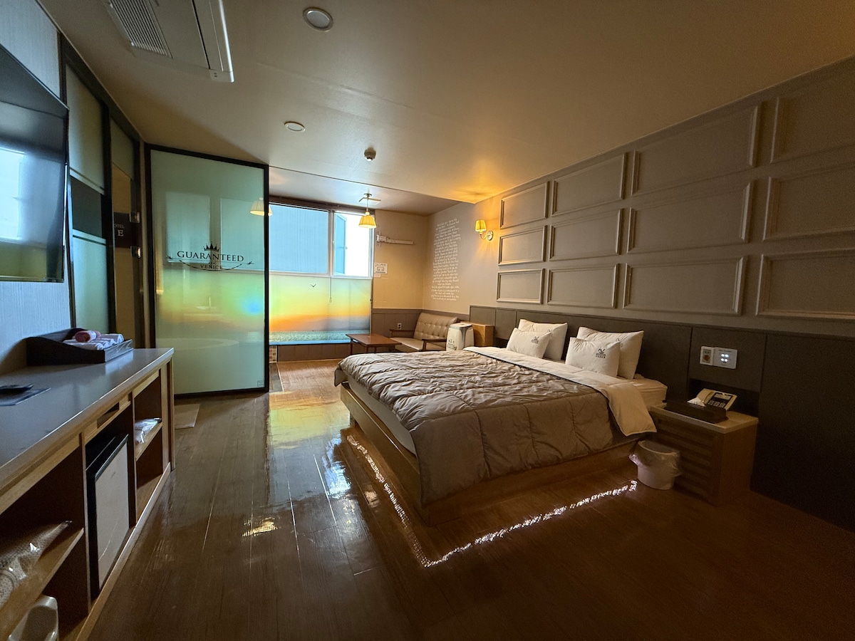 在飯店的招牌中體驗時尚與奢華。 可容納3人,配有1張雙人床和1張單人床,並有獨立客廳,因此您可以單獨觀看電視或進行私人辦公室工作。 衛浴設有獨立淋浴間、浴缸和洗手台,非常方便。 非常豪華和乾淨的飯店,適合家庭旅遊或來自國外的房客入住! ! 這是襄山最好的特色飯店,每天進行兩次清潔檢查,力求像五星級飯店一樣舒適奢華。