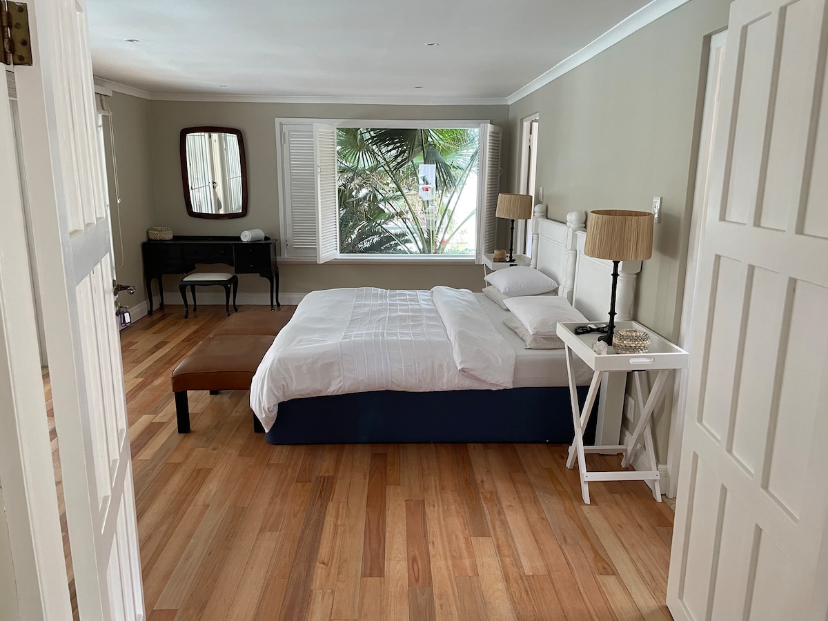 Previously known as Eggersheim – now Buckingham Garden Suite with the same great experience. Enjoy a luxurious stay in Cowies Hill Estate in a stylish, 1-bedroom, open-plan, self-catering suite. Ideal for executives or traveling couples, it’s located in a safe, quiet neighborhood. Surrounded by lush greenery and vibrant birdlife, this peaceful retreat lets you escape the city while staying within its reach.