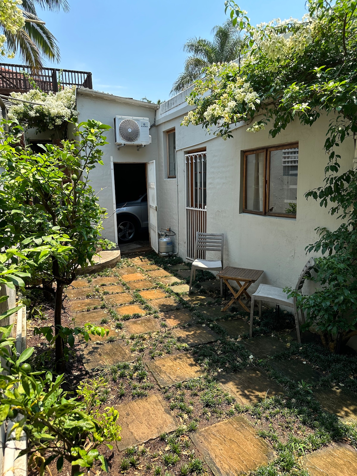 私人..最近翻修。停車場(遠程操作)。位於德班所有活動的中心(5分鐘即可抵達海灘、體育場、佛羅里達路)…步行即可抵達餐廳。設備齊全的廚房、雙人床、空調、WiFi、電視和Disney +。用於負載分流的逆變器。太陽能間歇泉=驚人的淋浴間。獨立更衣室和工作站。美麗的私人室外區域,充滿果樹/陰涼。(4天以上:每4天提供一次客房服務。個人洗衣服務(應要求提供)