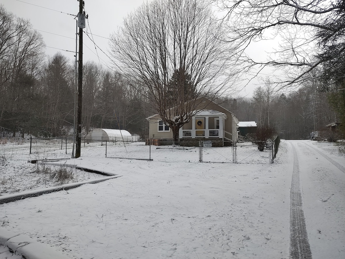Come support local tourism! We have recovered from the flood! You can sit on the front porch, relax, the view is amazing,& hear the stream. Stream has a sitting area, private roads are great to walk, take kids/pups.Great for kids/pups of all ages with parental supervision. Burnsville has a Brewery with live music ,Unicoi beautyspot & AT lookout is 22 miles, Mayland planetarium& observatory(get tickets in advance)! This area has so much to explore!