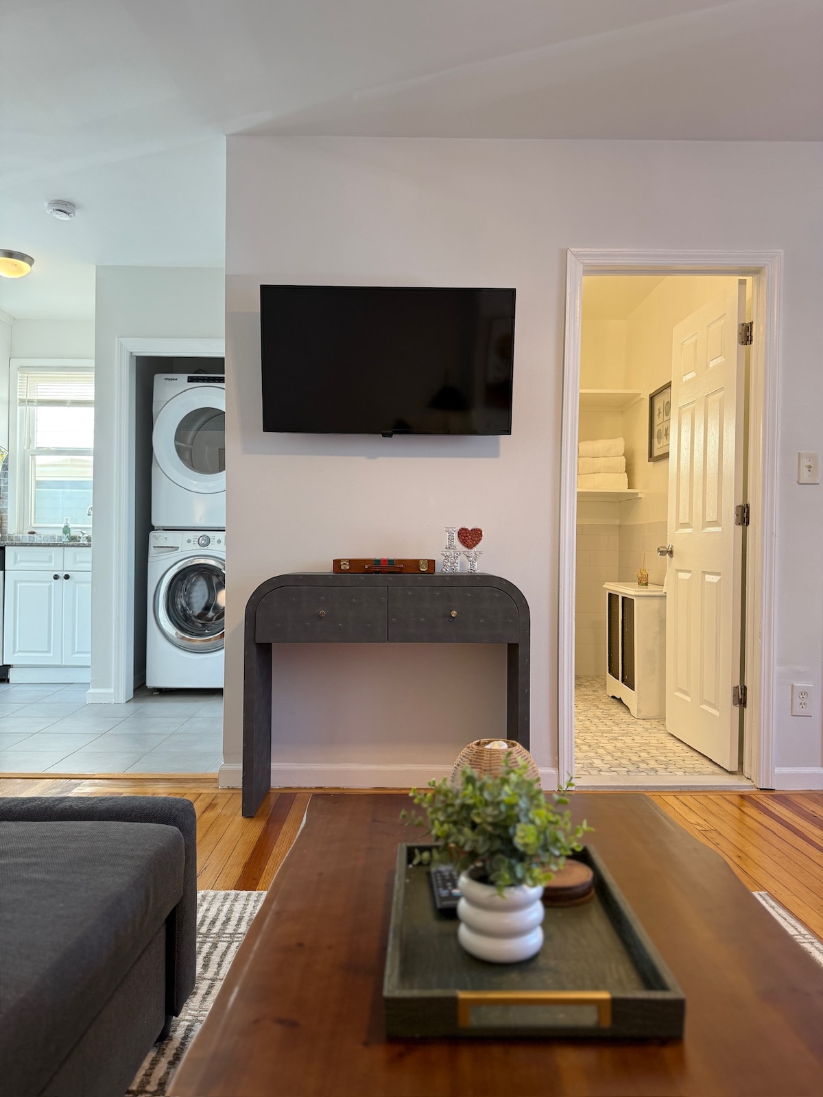 在這個設計時尚又安靜的空間中好好放鬆身心。 坐落在澤西市高地一條安靜的林蔭大道上。距離兩個大型公園只有幾個街區。前往紐約市的巴士站在轉角處(約20分鐘即可抵達市中心)。步行即可抵達很棒的咖啡廳、酒吧和餐廳。公寓配有全套廚房、雙人床和雙人沙發床。非常適合夫婦或小家庭。街頭停車需要每日通行證,可從JC停車管理局獲得。語言:英語、韓語。