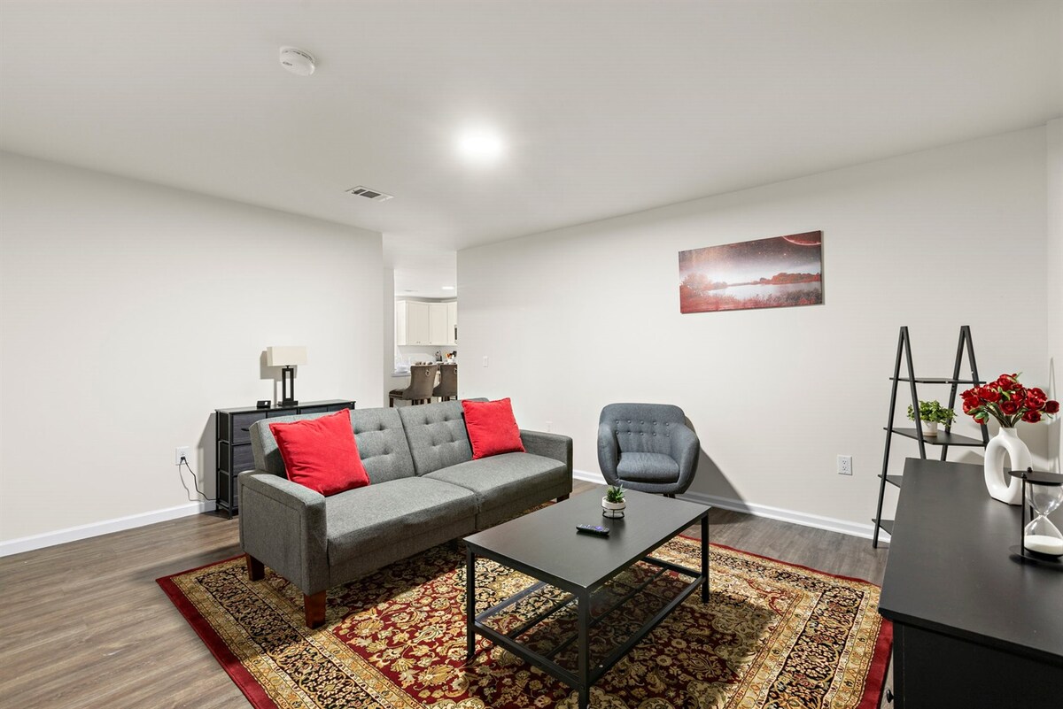 迷人的2間臥室公寓,距離紐瓦克國際機場10分鐘,配有私人停車位。 享受WiFi、中央暖氣和空調等設備與服務,兩間臥室均配有50吋智慧電視,客廳配備60吋智慧電視。 溫馨舒適的氛圍和家一般的舒適,很容易理解為什麼您可以在我們的房源放鬆身心。