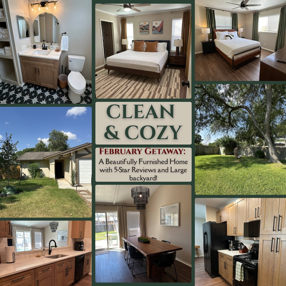 您好!我們對房源投入了很多愛心,希望讓您的住宿體驗美好。 -位置方便,靠近I35、FM1604、RAFB ,距離IKEA和許多餐廳5分鐘路程 -兩車車庫,車庫內有足夠的空間可停放兩輛車,車道上還有額外的停車位 -超級安全的家庭友好和安靜的社區,Live Oak警察局巡邏該地區。Live Oak警察局和消防局就在附近 -可供 9 人入住 -智慧電視,配有可調節的支撐桿和充足的座位 -洗衣機和烘衣機