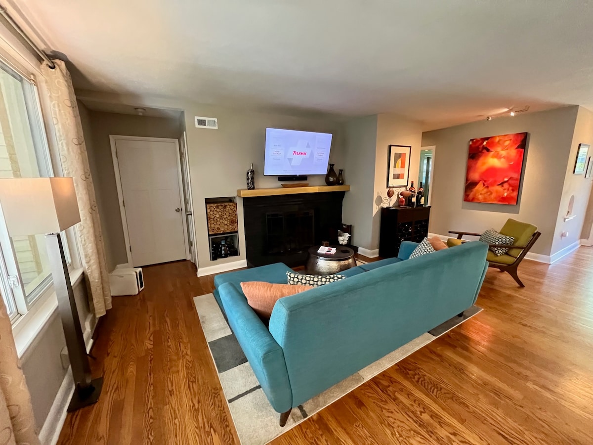 歡迎來到Spa 7748! 放鬆身心,享受我們為您提供的安靜、寧靜空間。 三間臥室、兩間全套衛浴、洗衣房、健身區、媒體/辦公區、設備齊全的廚房、兩個壁爐、有蓋露臺、室外火坑、車道停車位和街道停車位。 位於大學城的中心,距離克萊頓市中心商業/娛樂區、華盛頓大學、Fontbonne大學市中心STL、Central West End、The Grove、Dogtown僅幾分鐘路程。