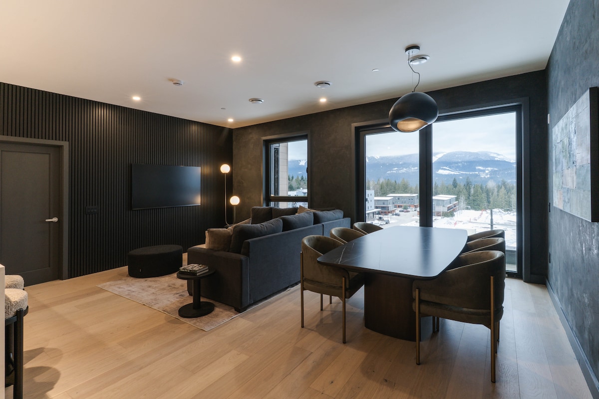Modern 2 bedroom condo just 5 minutes to Revelstoke Mountain Resort and downtown. Set in a relaxed neighborhood within a convenient plaza, with a spa, gym, pilates studio, grocery store, liquor store, restaurant, daycare, and bakery all nearby. Enjoy a fully equipped kitchen, in suite laundry, and underground parking. Unwind on the spacious deck with mountain views, or relax indoors on the large sectional after a day of exploring. A comfortable, well located base for your stay in Revelstoke.