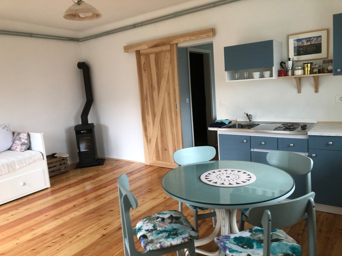 有機農場上設有露臺的安靜公寓